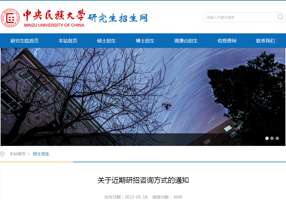 考研頻道從中央民族大學研究生招生網(wǎng)了解到,中央民族大學2022年關于近期研究生招生咨詢方式的通知已發(fā)布,詳情如下: