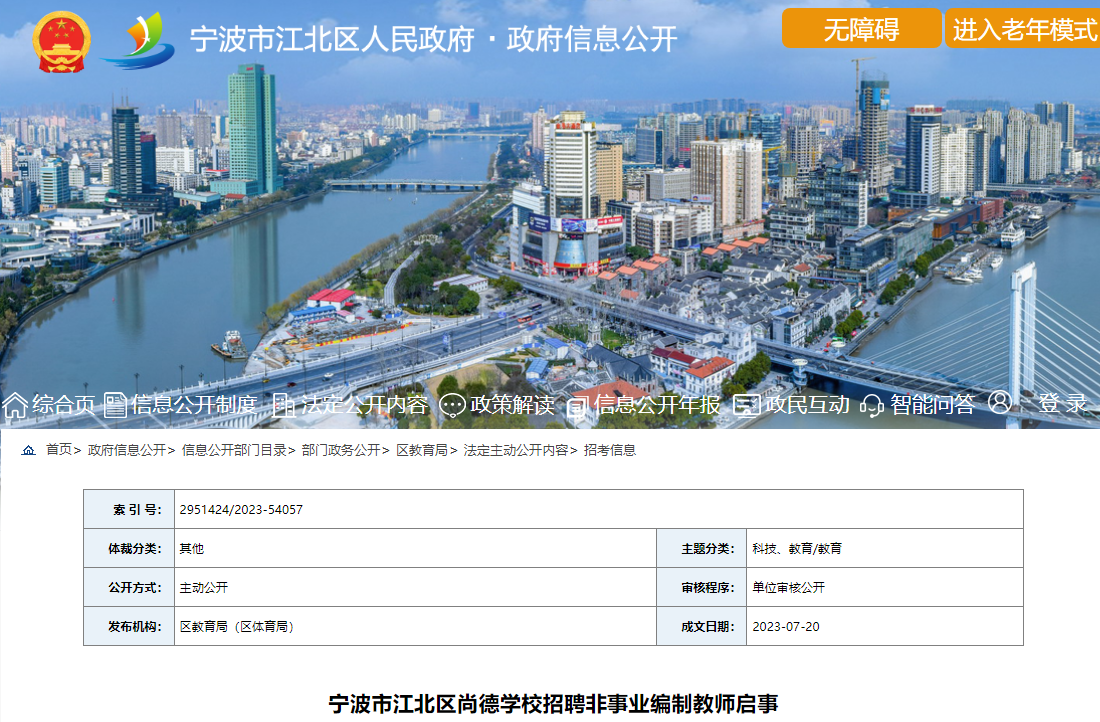 2023浙江寧波市江北區(qū)尚德學(xué)校招聘小學(xué)美術(shù)教師1名,報(bào)名截止日期:2023年8月10日?,F(xiàn)將招聘公告原文發(fā)布如下: