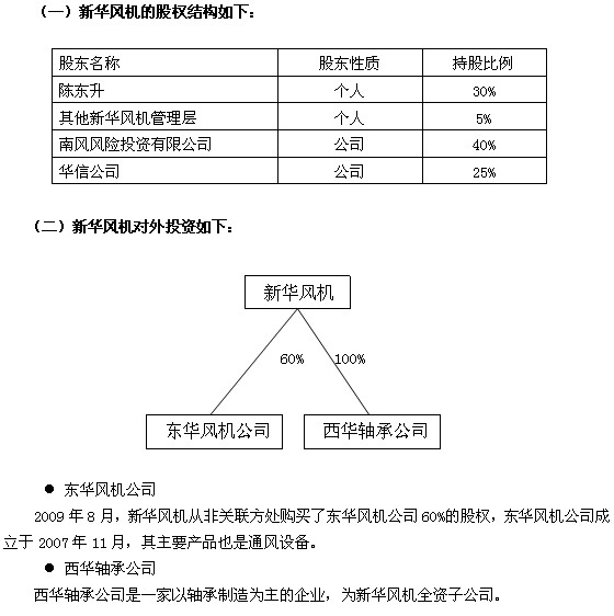 資料三:新華風機股權(quán)結(jié)構(gòu)、對外投資情況及其他相關(guān)資料