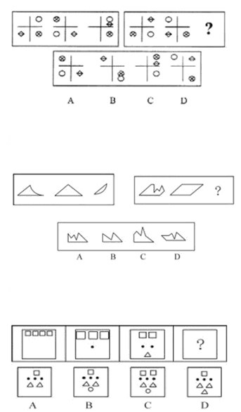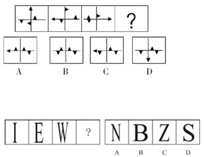 【解析2】A。第一組前兩個(gè)圖形疊加去同存異后左右翻轉(zhuǎn)得到第三個(gè)圖形;第二組前兩個(gè)圖形疊加去同存異后上下翻轉(zhuǎn)得到第三個(gè)圖形。