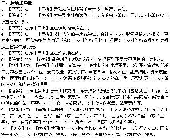2012年度陜西省會(huì)計(jì)從業(yè)資格考試《財(cái)經(jīng)法規(guī)與會(huì)計(jì)職業(yè)道德》試題答案與解析
