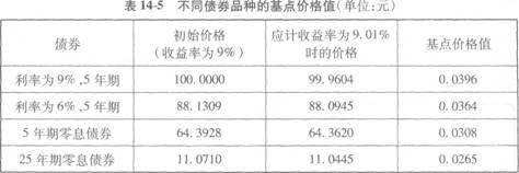 債券投資者需要對(duì)債券價(jià)格波動(dòng)性和債券價(jià)格利率風(fēng)險(xiǎn)進(jìn)行計(jì)算。通常使用的計(jì)量指標(biāo)有基點(diǎn)價(jià)格值、價(jià)格變動(dòng)收益率值和久期。