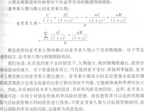 【解析】由于久期是衡量利率變動(dòng)敏感性的重要指標(biāo),這意味著如果預(yù)期利率上升,就應(yīng)當(dāng)縮短債券組合的久期;如果預(yù)期利率下降,則應(yīng)當(dāng)增加債券組合的久期。