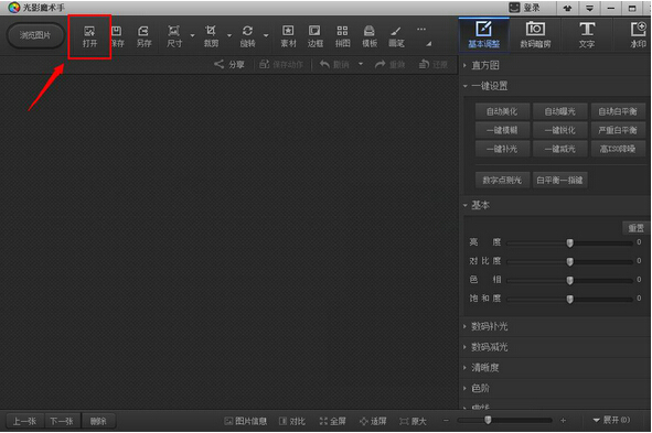 3、點擊軟件工具欄目中的【打開】按鈕,選擇需要剪裁的照片。