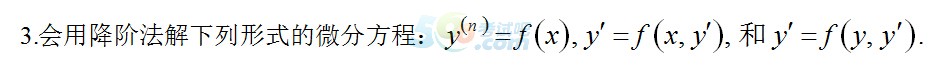 常微分方程的基本概念、 變量可分離的微分、 齊次微分方程、 一階線性微分方程、 可 降階的高階微分方程、 線性微分方程解的性質及解的結構定理、 二階常系數(shù)齊次線性微分 方程、 高于二階的某些常系數(shù)齊次線性微分方程、 簡單的二階常系數(shù)非齊次線性微分方 程、 微分方程的簡單應用