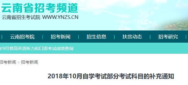 自學(xué)考試頻道從云南省招生考試院了解到,云南2018年10月自考部分考試科目的補(bǔ)充通知已公布,具體如下: