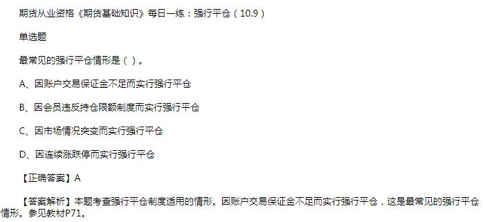 期貨從業(yè)考試進(jìn)入倒計時,沒有捷徑,看書+聽課+做題。這里,整理期貨從業(yè)欄目每日一練提供了高質(zhì)量的習(xí)題。以下為期貨從業(yè)資格每日一練,今天你練了嗎?