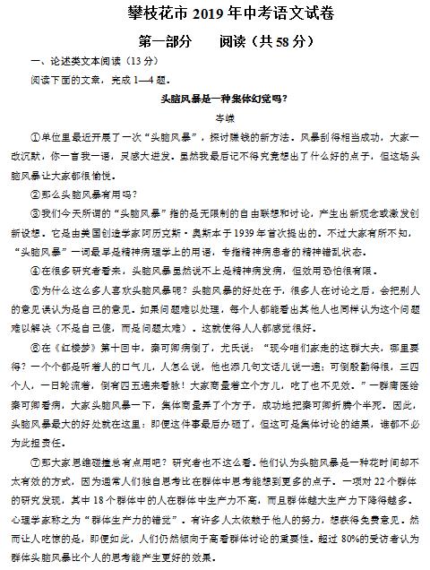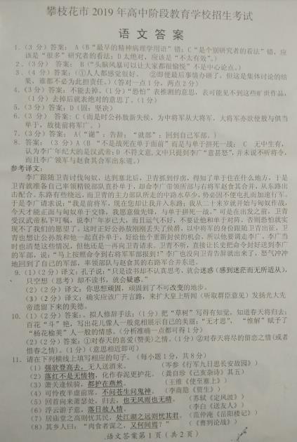 2019年四川攀枝花中考語文考試已結(jié)束,中考頻道搜集整理發(fā)布了“2019年四川攀枝花中考語文試題及答案”,供考生們參考學(xué)習(xí),小編預(yù)祝大家取得優(yōu)異的成績!