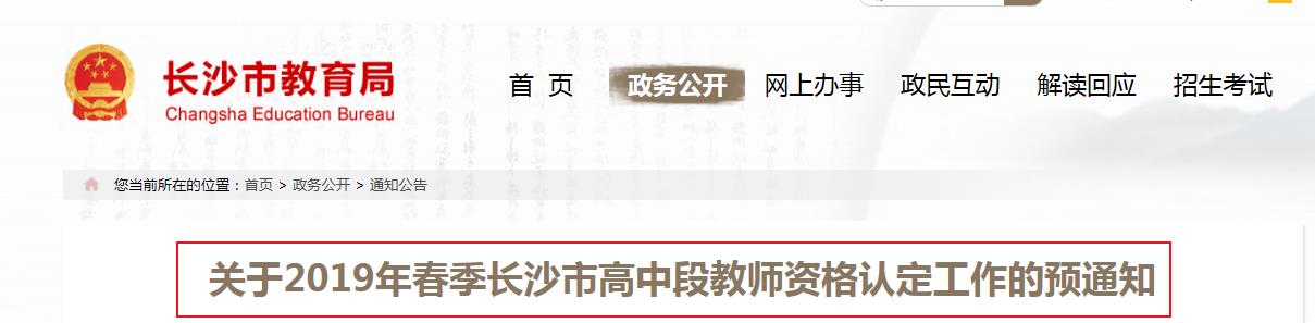 為確保2019年長沙市高中段教師資格認定工作的依法有序?qū)嵤F(xiàn)將有關(guān)事項預(yù)通知如下: