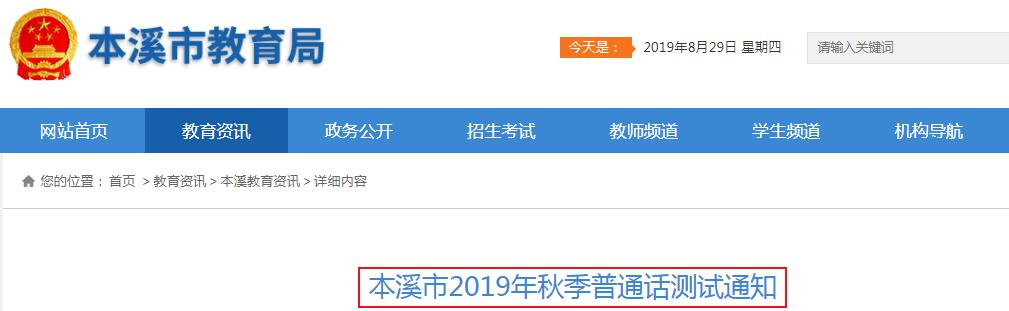 從本溪市教育局獲悉,2019年秋季遼寧本溪普通話水平測試報(bào)名通知已公布,報(bào)名時(shí)間為9月2日-9月5日,具體詳情如下: