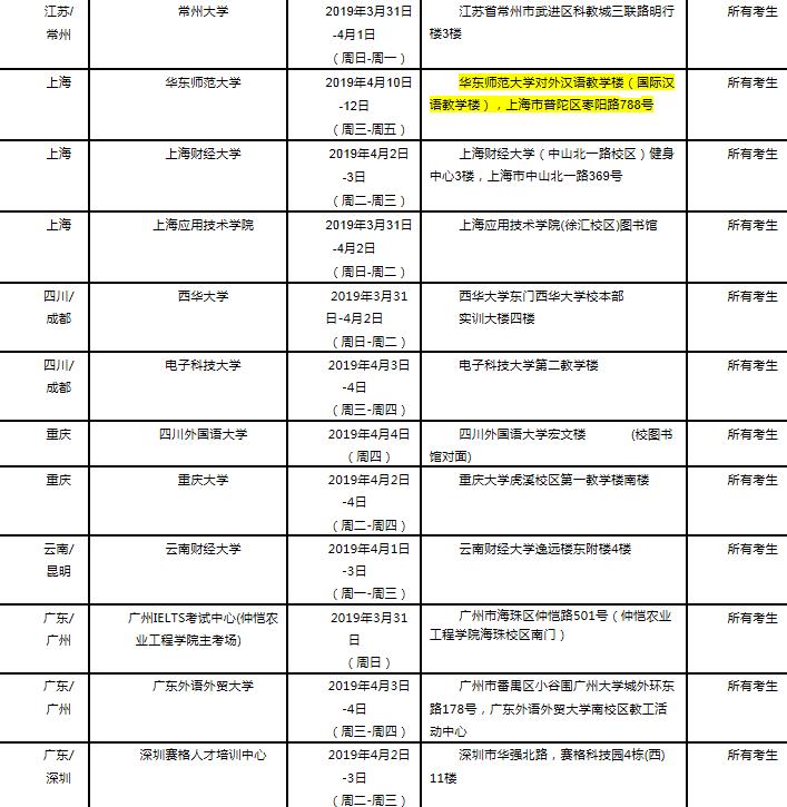接英國(guó)文化教育協(xié)會(huì)通知,報(bào)考2019年4月6日雅思考試的考生口語安排如下,供廣大考生參考。請(qǐng)?jiān)诠P試日期前十天登錄雅思考試報(bào)名網(wǎng)站查詢您的口試安排,打印準(zhǔn)考證并以準(zhǔn)考證信息為準(zhǔn)。