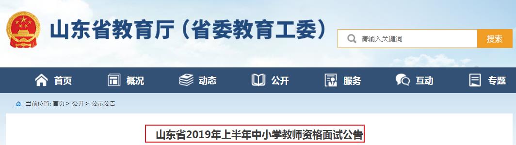 根據(jù)教育部統(tǒng)一部署和山東省工作安排,現(xiàn)將全省2019年上半年中小學(xué)教師資格面試工作有關(guān)事宜公告如下: