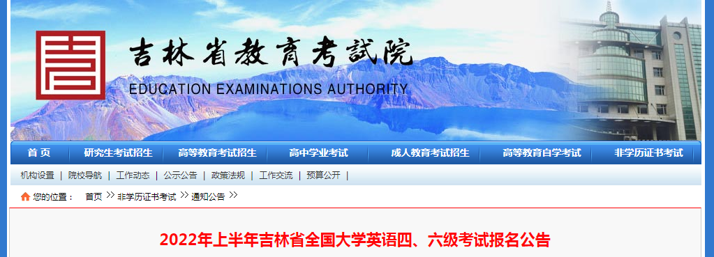 從吉林省教育考試院發(fā)布的《2022年上半年吉林全國大學(xué)英語四、六級考試報名公告》得知,2022上半年吉林英語四級報名時間、條件及入口已公布,3月15日-4月8日進(jìn)行報名,具體詳情如下: