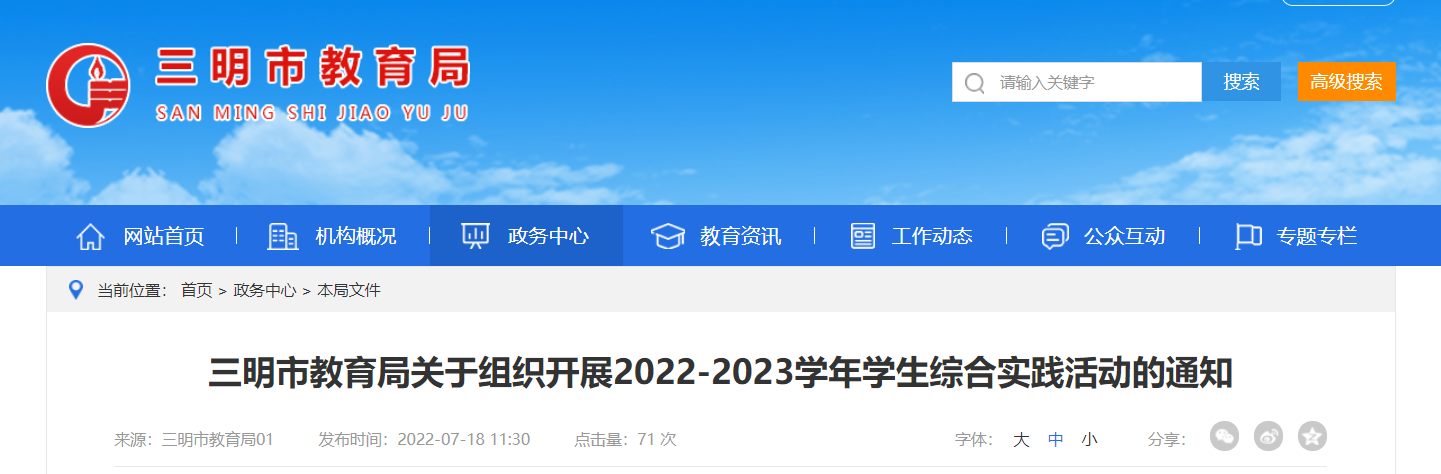 福建省三明市教育局關(guān)于組織開展2022-2023學(xué)年學(xué)生綜合實(shí)踐活動(dòng)的通知已發(fā)布。為您整理了以下內(nèi)容,供您參考。