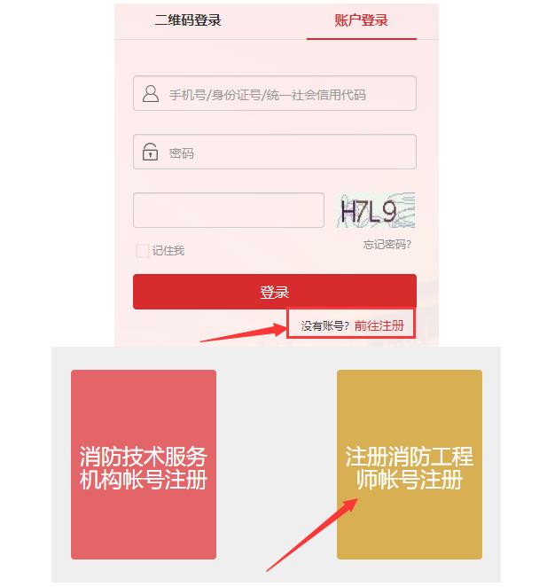 第二步,登錄/注冊(cè)賬號(hào),點(diǎn)擊“注冊(cè)消防工程師賬號(hào)注冊(cè)”;