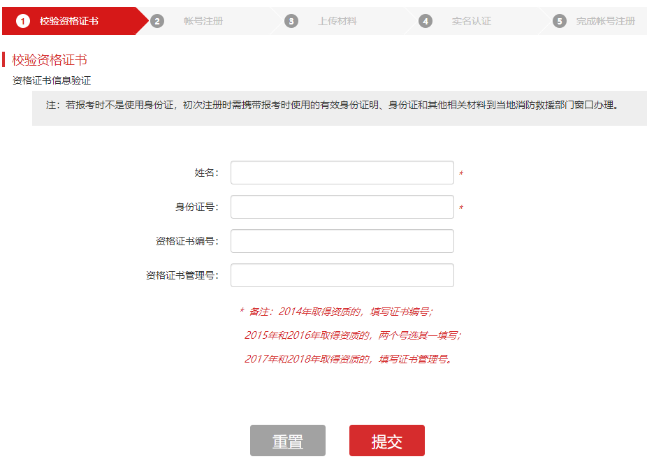 第三步,校驗(yàn)資格證書(shū),如實(shí)填寫(xiě)姓名、身份證號(hào)、資格證書(shū)編號(hào)、資格證書(shū)管理號(hào),進(jìn)行注冊(cè)消防工程師的基礎(chǔ)數(shù)據(jù)驗(yàn)證;