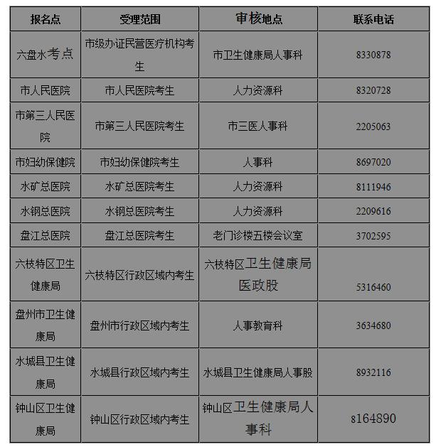 對于市級辦 證的民營醫(yī)療機(jī)構(gòu)考生需在本考點進(jìn)行確認(rèn)的,由單位負(fù)責(zé)人事工作人員收集資料后統(tǒng)一現(xiàn)場審核。各報名點受理范圍及聯(lián)系電話見下表: