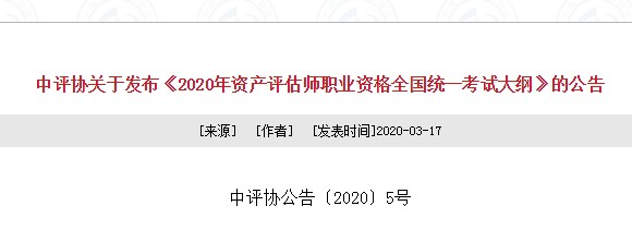 中評協(xié)關(guān)于發(fā)布《2020年資產(chǎn)評估師職業(yè)資格全國統(tǒng)一考試報名簡章》公告