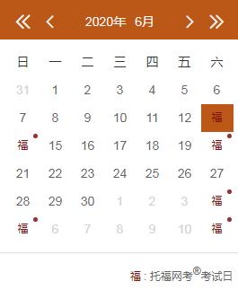 從教育部考試中心托福網(wǎng)獲悉,2020年6月托??荚嚂r間安排已公布,6月20日有一場考試,具體詳情如下: