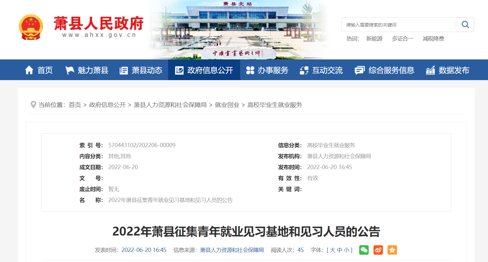2022安徽省宿州市蕭縣征集青年就業(yè)見習基地和見習人員公告已發(fā)布。即日起開始報名。現(xiàn)將招聘公告原文發(fā)布如下: