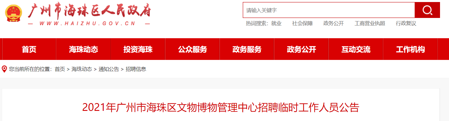 2021廣東省廣州市海珠區(qū)文物博物管理中心招聘公告已發(fā)布,報(bào)名時(shí)間:2021年6月4日至6月8日;為您整理了招聘條件和報(bào)名流程,供您參考。