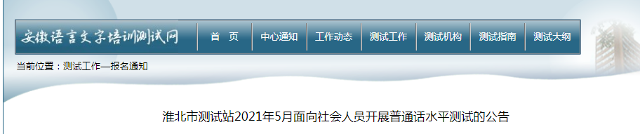 從安徽語言文字培訓測試網(wǎng)發(fā)布的《2021年5月安徽淮北市面向社會人員開展普通話水平測試的公告》得知,2021年5月安徽淮北市普通話考試時間為5月7日-5月16日,具體詳情如下: