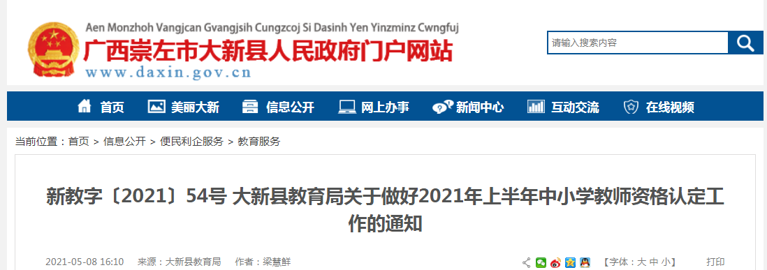 資格認(rèn)定工作的通知》(桂教教師〔2021〕8號)和崇左市教育局《關(guān)于做好2021年上半年中小學(xué)教師資格認(rèn)定工作的通知》(崇教人〔2021〕15號)文件精神,為做好我縣下半年中小學(xué)教師資格認(rèn)定工作,現(xiàn)將有關(guān)事項通知如下: