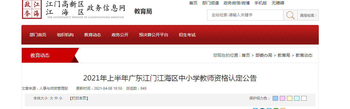 從江門市江海區(qū)教育局獲悉,2021年上半年廣東江門江海區(qū)中小學(xué)教師資格認(rèn)定公告已公布,請相關(guān)人員仔細(xì)閱讀,具體詳情如下: