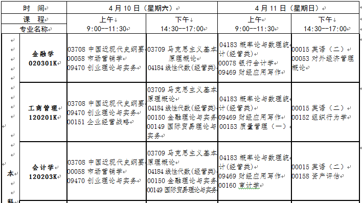 自考頻道根據(jù)江西省教育考試院公布的關(guān)于印發(fā)《2021年江西省自學考試課程安排表》的通知了解到,2021年上半年江西自考時間已公布,安排在4月10日-11日期間舉行,具體如下: