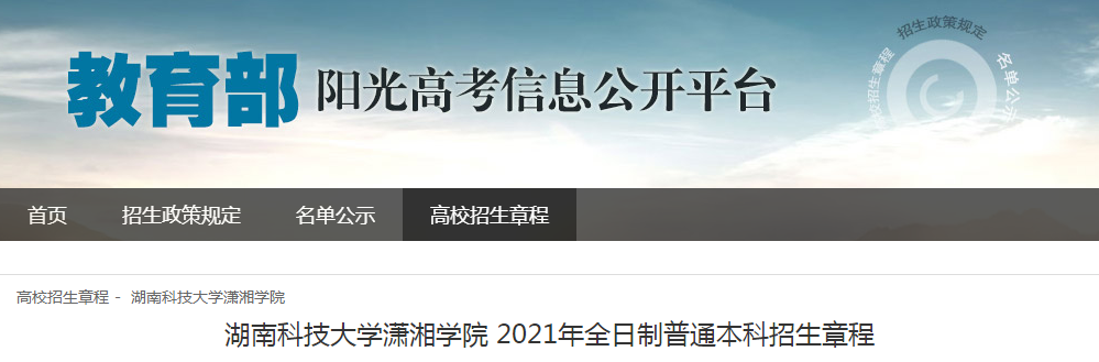 從教育部陽(yáng)光高考信息公開(kāi)平臺(tái)獲悉,湖南科技大學(xué)瀟湘學(xué)院2021年全日制普通本科招生章程已公布,具體詳情如下: