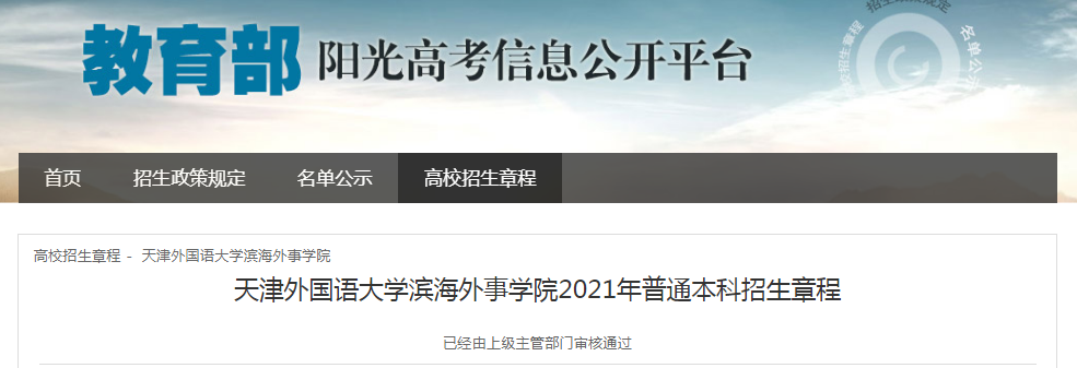 從教育部陽光高考信息公開平臺(tái)獲悉,天津外國語大學(xué)濱海外事學(xué)院2021年普通本科招生章程已公布,具體詳情如下: