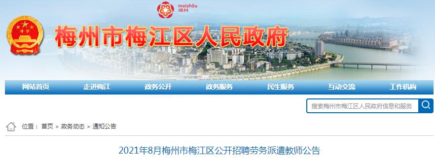 2021年8月廣東梅州梅江區(qū)招聘勞務(wù)派遣教師50人,報(bào)名時(shí)間:2021年8月12日—8月13日,現(xiàn)將招聘公告原文發(fā)布如下: