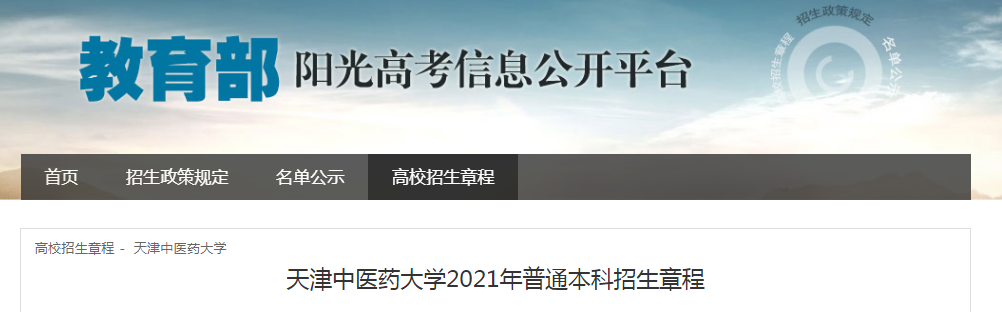 從教育部陽光高考信息公開平臺獲悉,天津中醫(yī)藥大學(xué)2021年普通本科招生章程已公布,具體詳情如下: