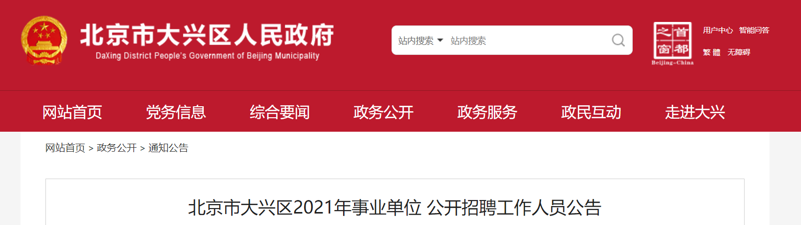 【點擊進入:2021北京市大興區(qū)事業(yè)單位招聘報名入口】