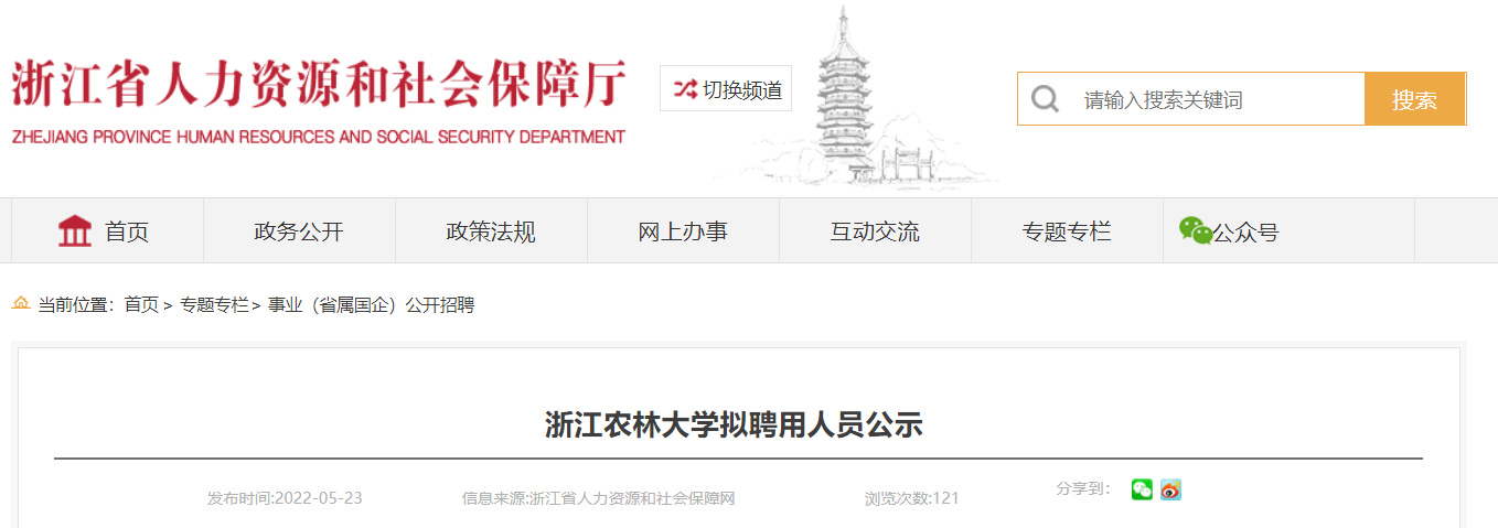 2022浙江農(nóng)林大學(xué)擬聘用人員公示已發(fā)布,公示時(shí)間:從2022年5月23日到2022年5月31日,現(xiàn)將原文發(fā)布如下: