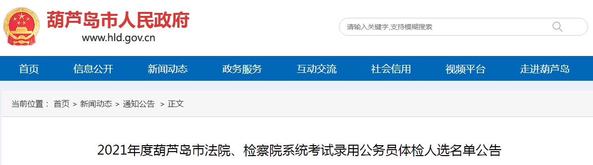 根據(jù)上述原則,經(jīng)對參加2021年度葫蘆島市法院、檢察院系統(tǒng)考試錄用公務(wù)員考試的考生筆試、面試成績進行合成,確定本次各招考職位體檢人選。
