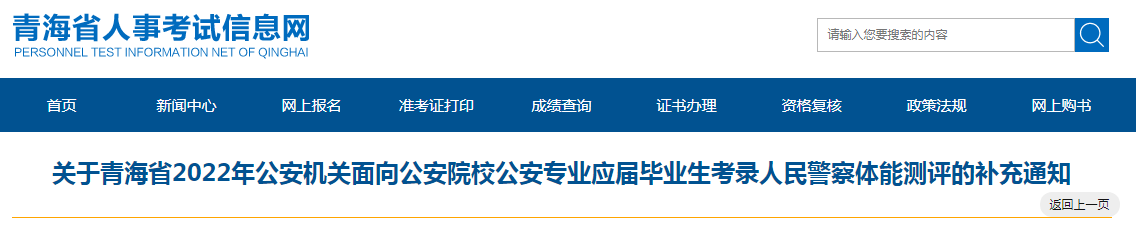 從青海省教育考試網(wǎng)了解到,青海省2022年公安機關面向公安院校公安專業(yè)應屆畢業(yè)生考錄人民警察體能測評的補充通知已發(fā)布,詳細內(nèi)容如下:
