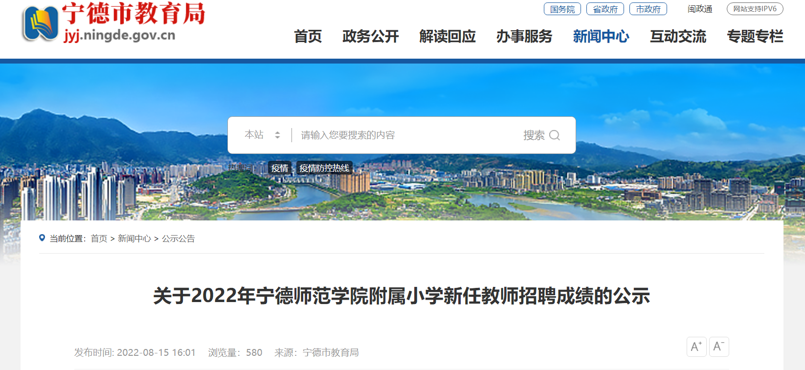 根據(jù)市教育局、市人社局《2022年寧德市市直中小學公開招聘新任教師工作的通知》(寧教人〔2022〕18號)、《寧德市教育局關于2022年市直中小學公開招聘新任教師面試工作有關事項的公告》等規(guī)定,2022年寧德師范學院附屬小學新任教師招聘面試工作于8月14日順利開展,現(xiàn)將應聘人員招聘總成績予以公示,公示期8月16日至8月22日,如有異議,可在公示期間內(nèi),向?qū)幍率屑o委駐市教育局紀檢組(聯(lián)系電話:0593-2915662)、寧德市教育局人事科(聯(lián)系電話:0593-2915658)反映。