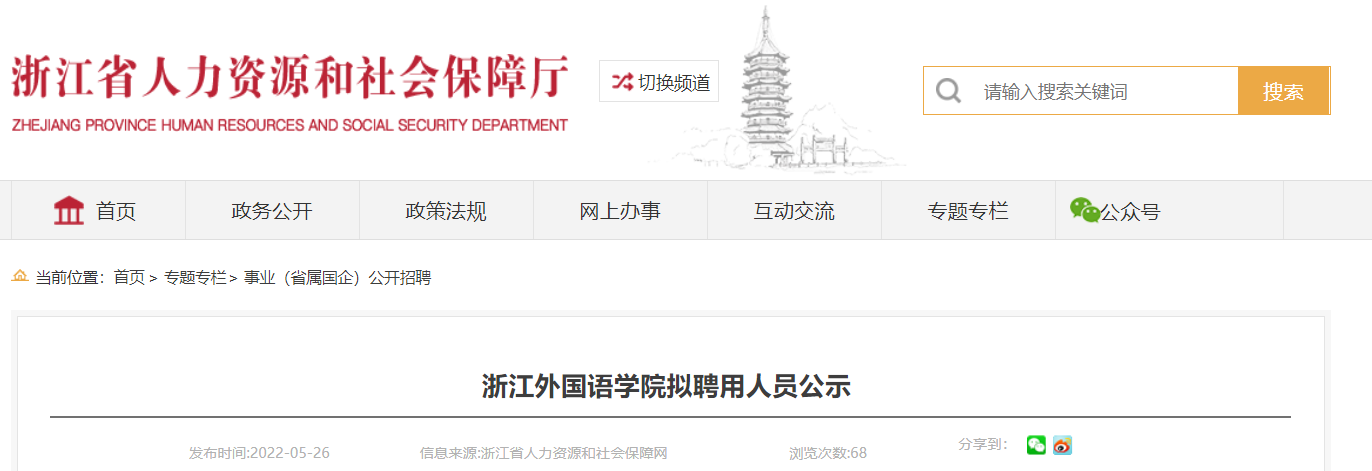 2022浙江外國語學(xué)院擬聘用人員公示已發(fā)布,公示時(shí)間:從2022年5月26日到2022年6月6日,現(xiàn)將原文發(fā)布如下: