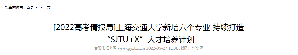 從貴陽(yáng)市招生考試管理中心了解到,2022年上海交通大學(xué)新增六個(gè)專(zhuān)業(yè),持續(xù)打造“SJTU+X”人才培養(yǎng)計(jì)劃,詳細(xì)內(nèi)容如下: