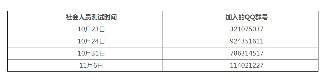 報名繳費成功后,社會考生按測試時間以真實姓名申請加入對應的賀州市普通話測試QQ群(見下表),在校中職學生由學校統(tǒng)一組織報名,無須加入Q群。相關培訓、測試安排在QQ群里公布,不再重新發(fā)文。