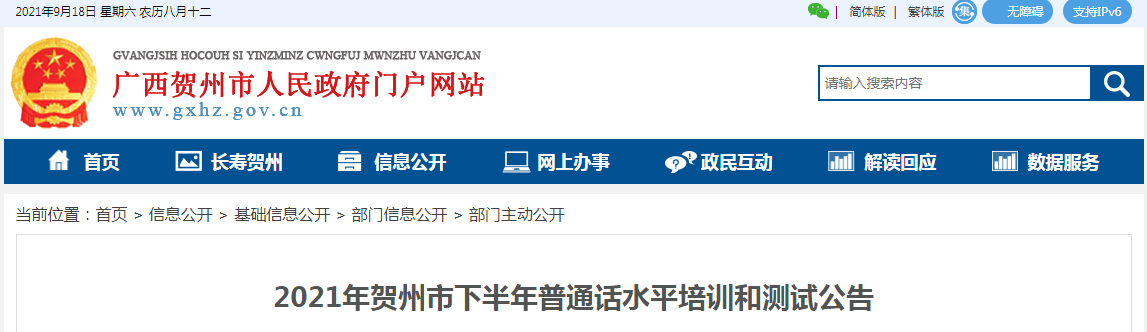賀州市2021年下半年普通話水平培訓和測試即將開始,為做好本次測試工作,現(xiàn)將有關事項公告如下:
