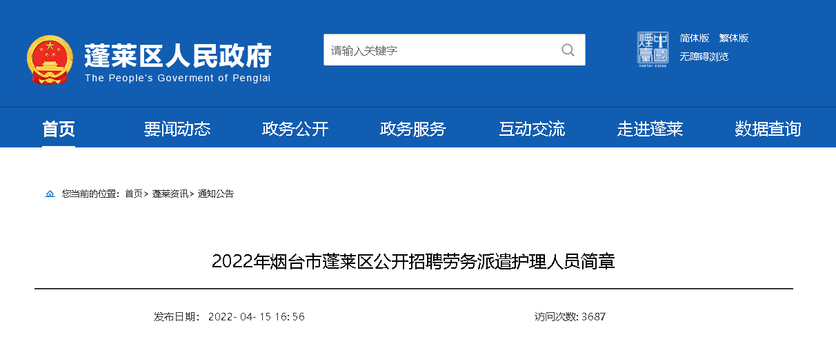 2022山東煙臺(tái)市蓬萊區(qū)招聘勞務(wù)派遣護(hù)理人員35人,報(bào)名時(shí)間:2022年4月18日至2022年4月22日,現(xiàn)將招聘公告原文發(fā)布如下: