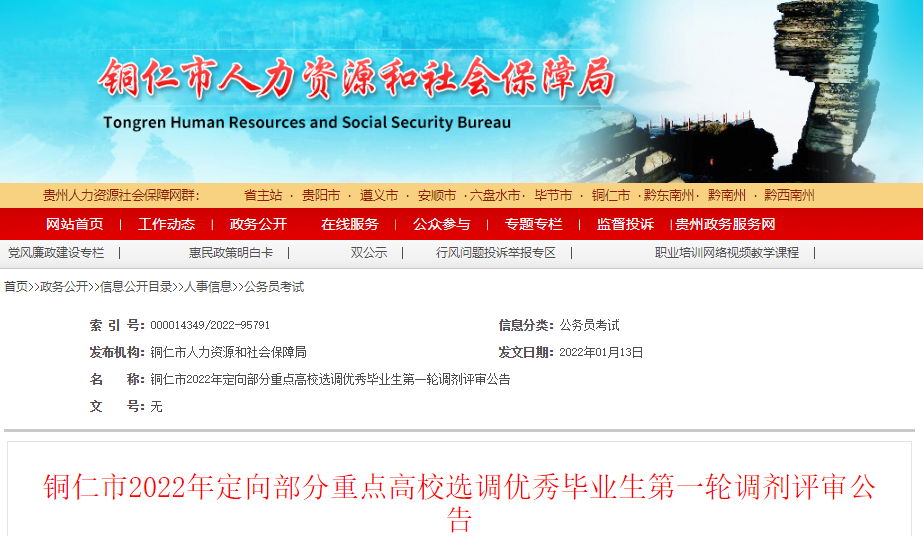 根據(jù)《貴州省2022年定向部分重點(diǎn)高校選調(diào)優(yōu)秀畢業(yè)生公告》規(guī)定,現(xiàn)將第一輪調(diào)劑工作有關(guān)事宜公告如下: