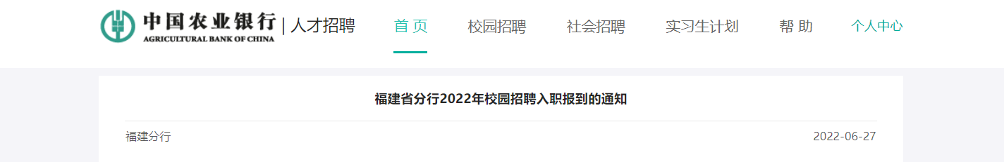 2022年農(nóng)業(yè)銀行福建省分行校園招聘入職報(bào)到的通知已發(fā)布,報(bào)到時(shí)間:2022年7月4日(星期一)上午9:00,現(xiàn)將公告發(fā)布如下: