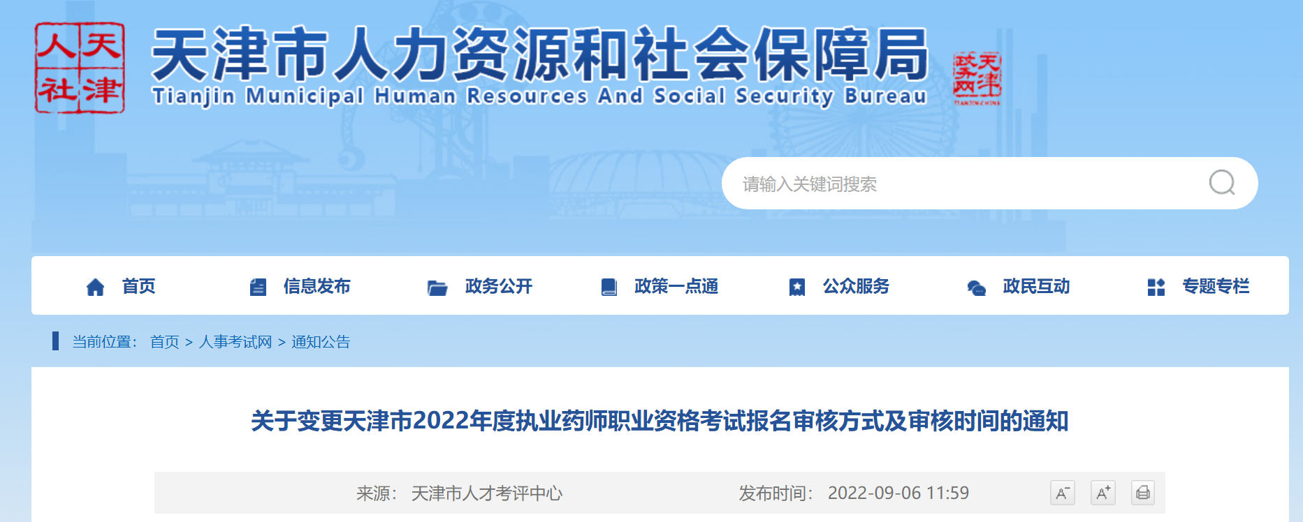 從天津市人力資源和社會保障局獲悉,關(guān)于變更天津2022年度執(zhí)業(yè)藥師職業(yè)資格考試報名審核方式及審核時間的通知已公布,請相關(guān)人員仔細閱讀,具體詳情如下: