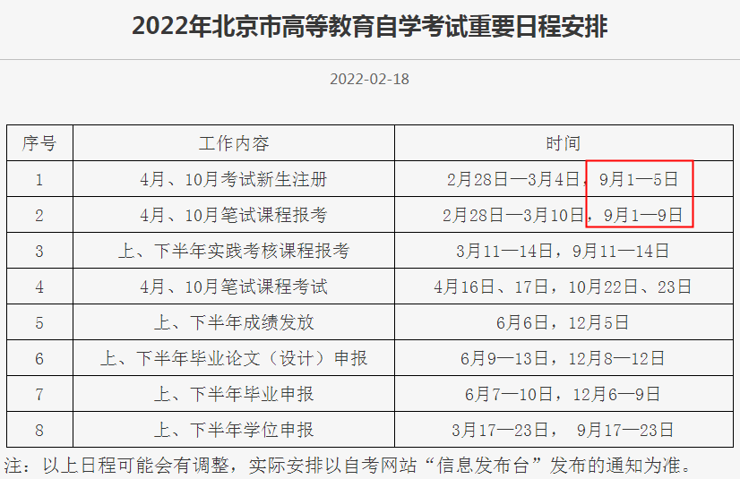 自學(xué)考試頻道根據(jù)北京教育考試院公布的《2022年北京市高等教育自學(xué)考試重要日程安排》了解到,北京2022年10月自考報(bào)名時(shí)間安排在9月1日-9日期間,考生可登錄北京自學(xué)考試報(bào)考系統(tǒng)(zikao.bjeea.cn)進(jìn)行報(bào)考。具體如下: