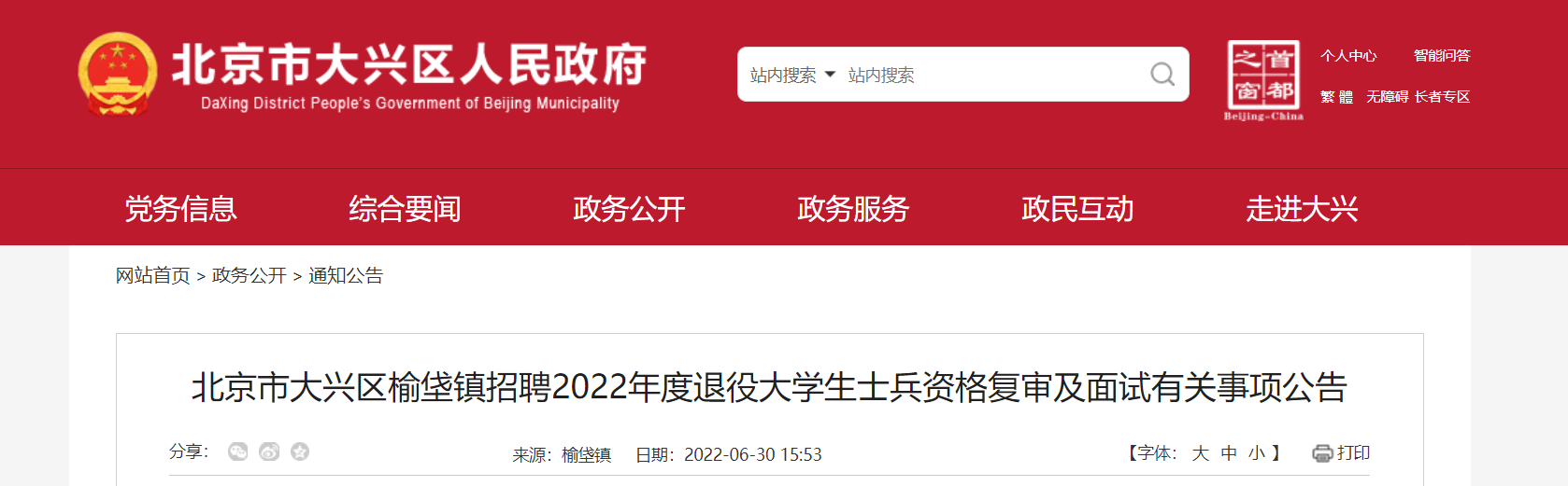 3.面試地點:大興區(qū)榆垡鎮(zhèn)政府六樓會議室