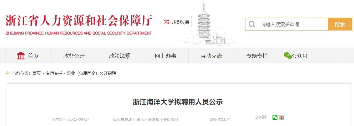 2022浙江海洋大學(xué)擬聘用人員公示已發(fā)布,公示時(shí)間:從2022年4月27日到2022年5月9日,現(xiàn)將原文發(fā)布如下: