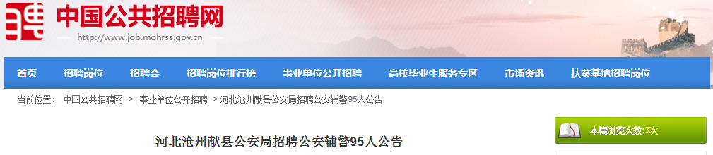 招聘公告通過獻(xiàn)縣人民政府面向社會發(fā)布。公告發(fā)布時間不少于7個工作日。